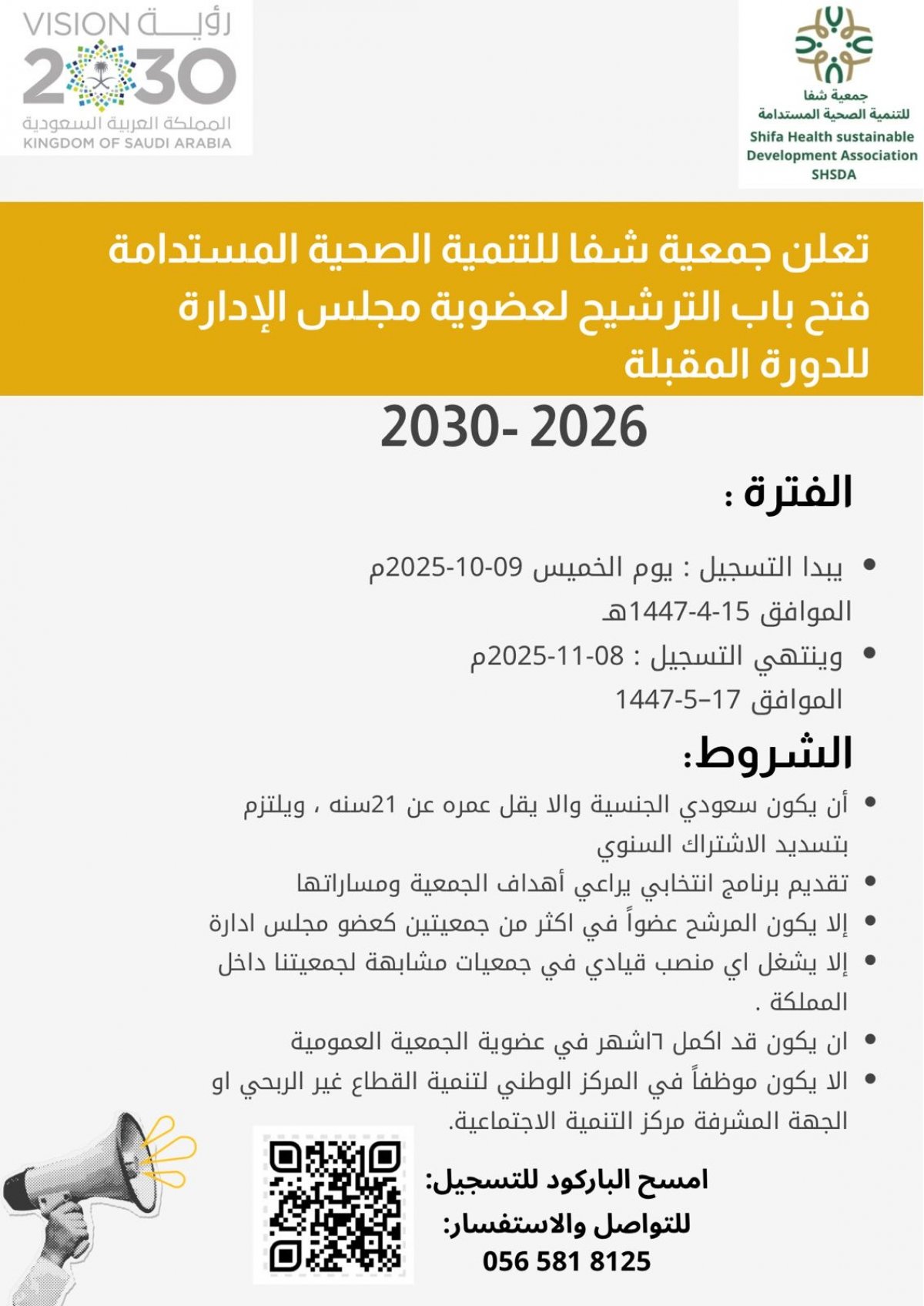 فتح باب الترشيح لعضوية مجلس ادارة جمعية شفا لتنمية الصحية المستدامة