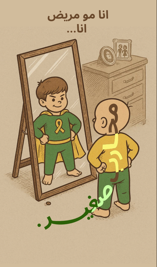 في الواقع، ما يراه في المرآة ليس مريضًا ضعيفًا، بل محاربًا صغيرًا يرتدي ثوب الشجاعة، ويقف بثبات الأبطال.